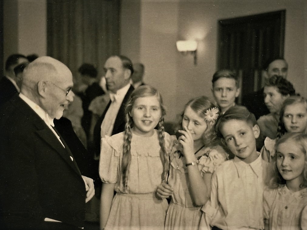 Johannes Greve mit seinen Enkelkindern Gisela, Dorit, Johannes und Magrit.