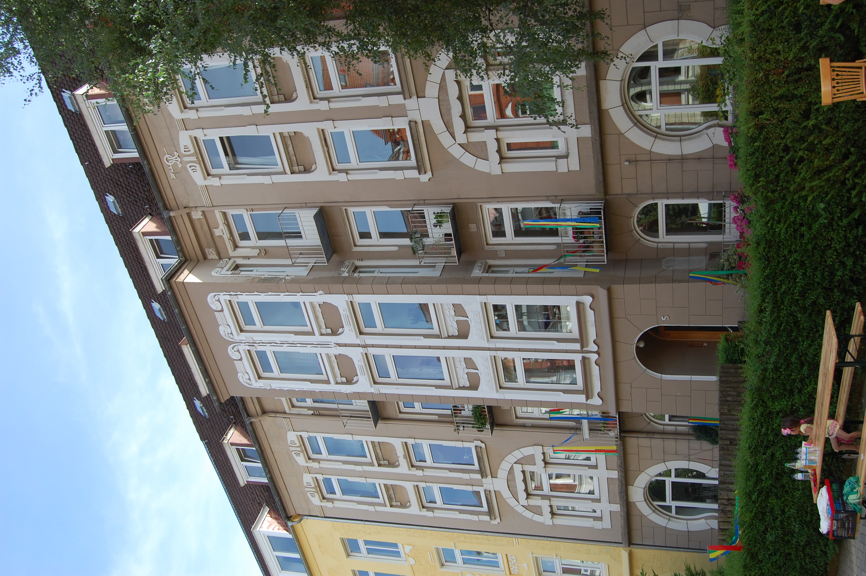Haus in der Steinstraße 5 geschmückt zum Straßenfest am 18. August 2012. Foto: Steffen Voß
