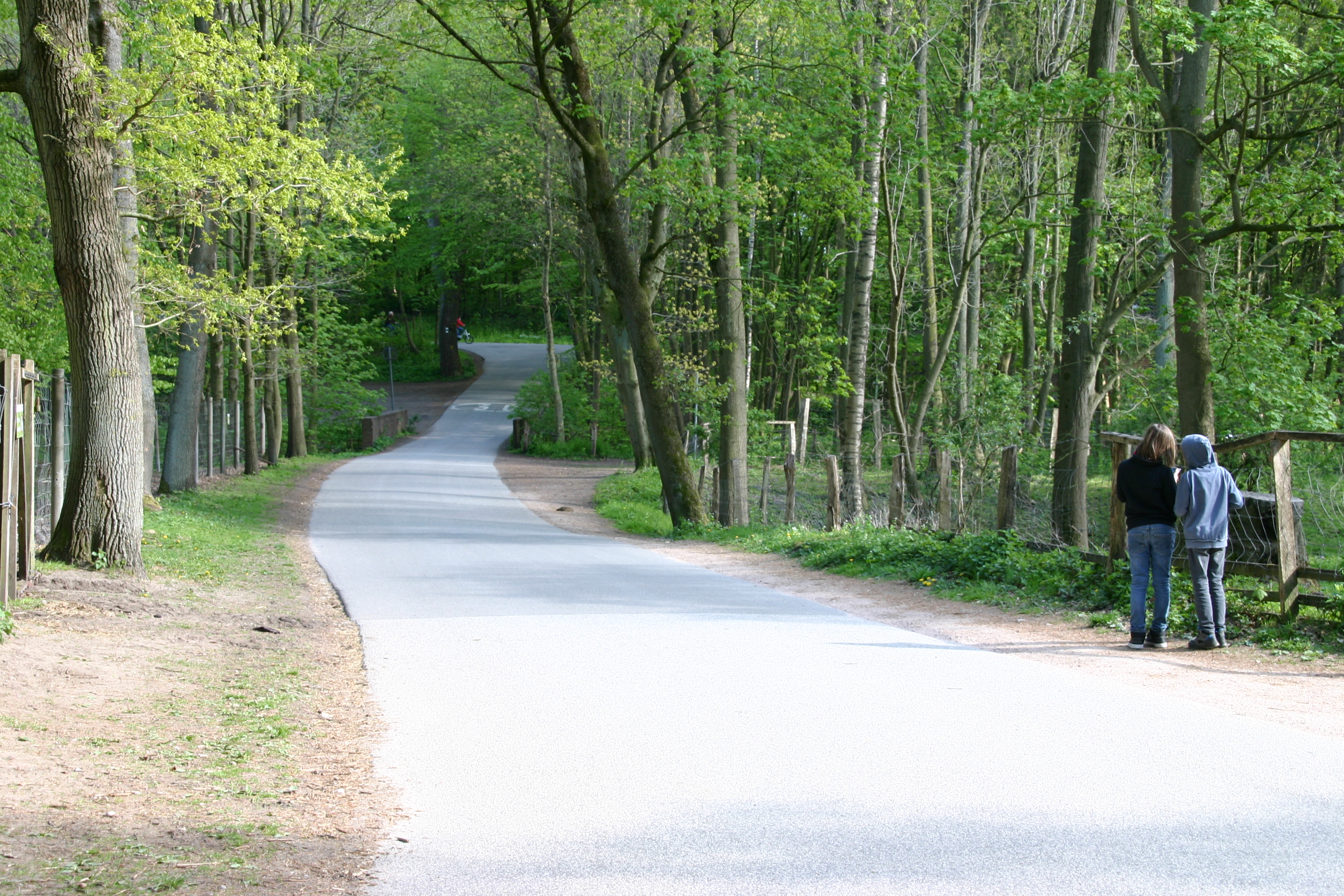 Ihlseeweg, Blick vom Tiergehege in Richtung Damaschkeweg; kurz vor der Einmündung die Brücke über die Kuhfurtsau